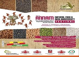 It is an attempt to infuse a new food culture that ensures not only supply of healthy and ethically produced food but also facilitates conservation of rich biodiversity at grass roots. This festival aims to showcase the rich diversity of Indian food, agro-biodiversity, farming and cooking practices, linkage between food and health and traditional health care systems and food culture and wisdom of India. The festival named as Annam National Festival on Food and Agro Biodiversity was first held at Thiruvananthapuram in December 2008 and again at Kozhikode in February 2010. To the latest, the biennial Annam was held successfully at Kochi during 10-14 December 2015.