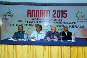 If the National Seminar began at BTH Hall at 10am; Hon. Minister for Agriculture, Shri. K.P. Mohanan inaugurated Annam 2015 at 3pm at Rajendra Maidan by handing over the sapling of our dear ‘Kalpavriksha’, Jackfruit tree to the savior of agro biodiversity, Dr. Vandana Shiva. An elite audience comprising of blessed author Shri. C. Radhakrishnan, Dr. Beena of Amrita Institute of Medical Sciences; Director of SHM, Dr. K. Prathapan, our president, Dr. G.G. Gangadharan and Member, CISSA, Dr. E.K. Easwaran were present.