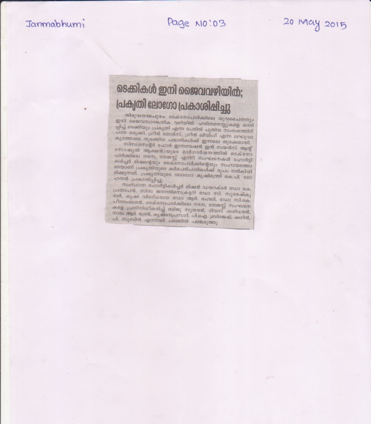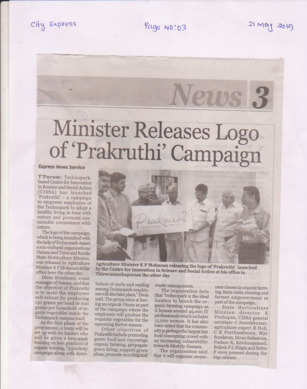 Logo Released by Sri.K.P Mohanan, Minister for Agriculture ,Government of Kerala