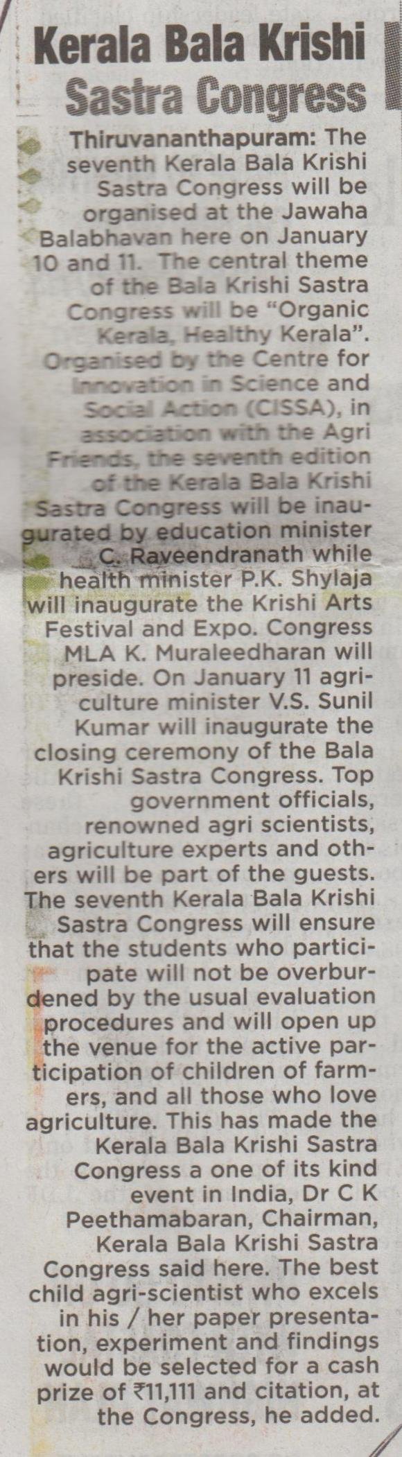 Media Coverage Report of Seventh Kerala Bala Krishi Sastra Congress