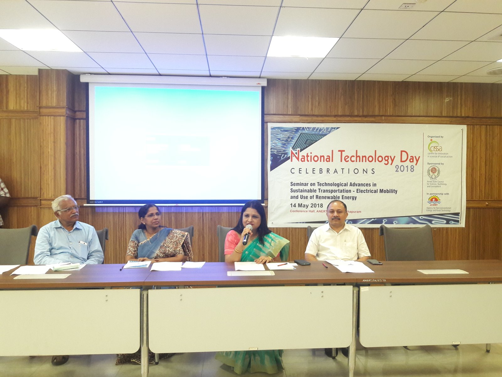 As part of National Technology Day 2018 Celebrations, Centre for Innovation in Science and Social Action (CISSA), organized a seminar on “Technological Advances in Sustainable Transportation – Electrical Mobility and Use of Renewable Energy in partnership withAgency for Non-conventional Energy and Rural Technology (ANERT), Government of Kerala on 14th May 2018 at the Conference Hall of ANERT, Thiruvananthapuram. This programme was sponsored by Kerala State Council for Science, Technology and Environment (KSCSTE).