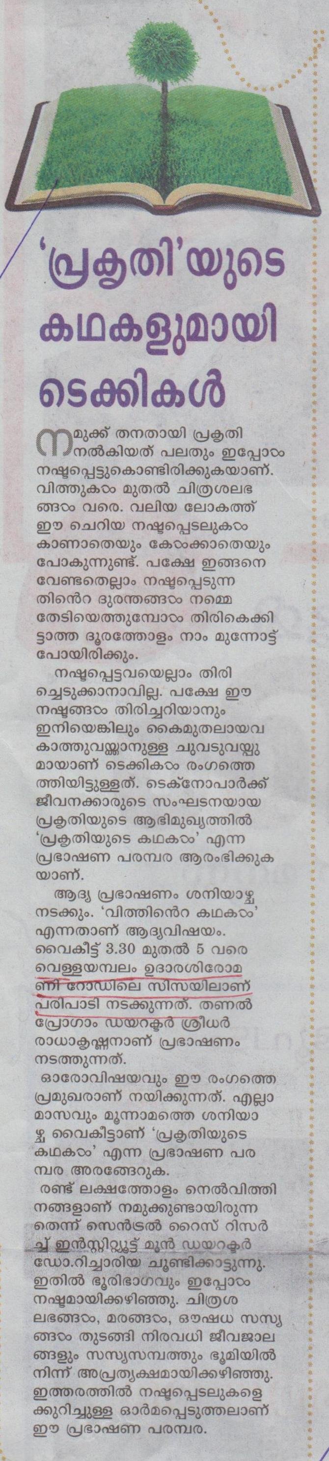 CISSA has launched “Prakruthi”- a Campaign to empower employees of the Techno park to adopt a healthy living in tune with nature and promote sustainable coexistence with nature. The objectives of Prakruthi include promoting green food and encourage organic farming, propagate green living, support green ideas, promote recycling and waste management. Natana and Tejas are partners of this campaign.